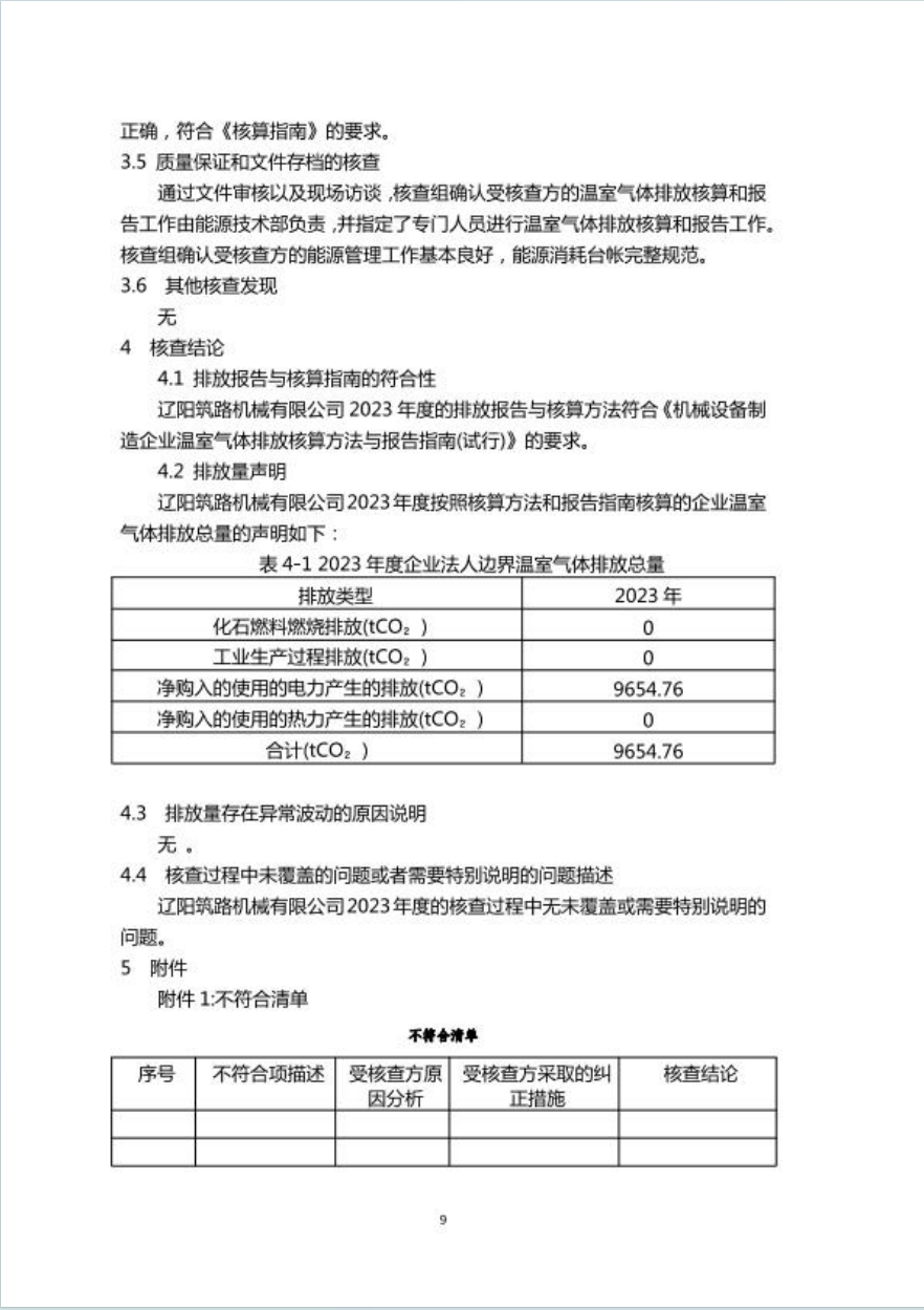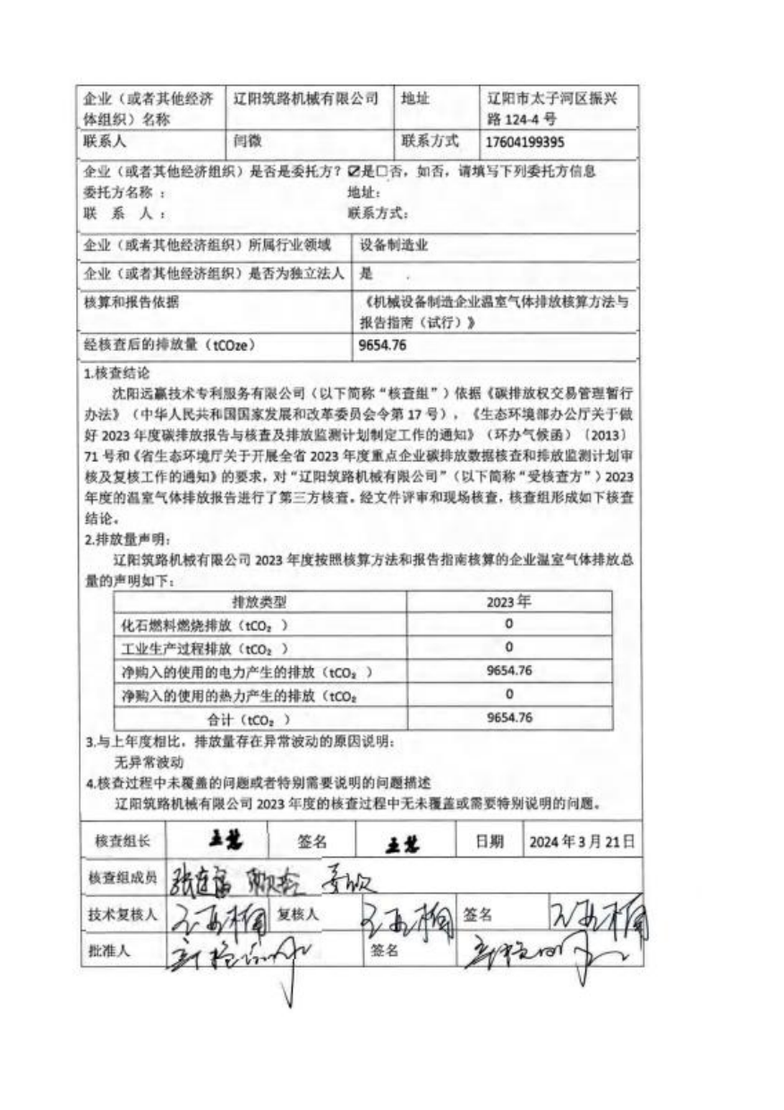 遼陽筑路機械有限公司2023年度溫室氣體排放核查報告